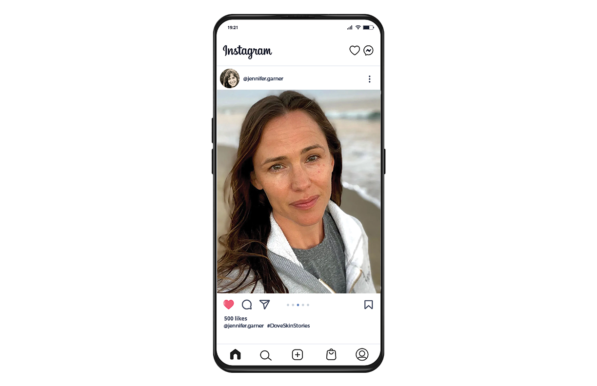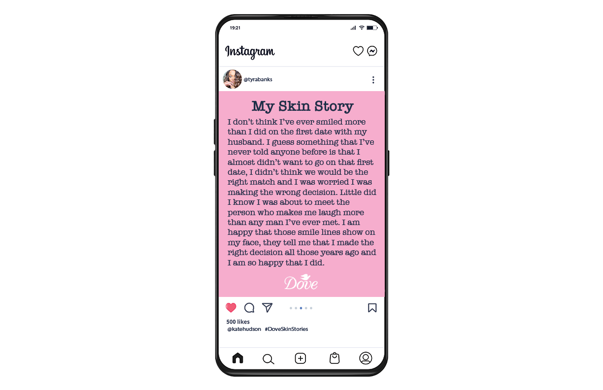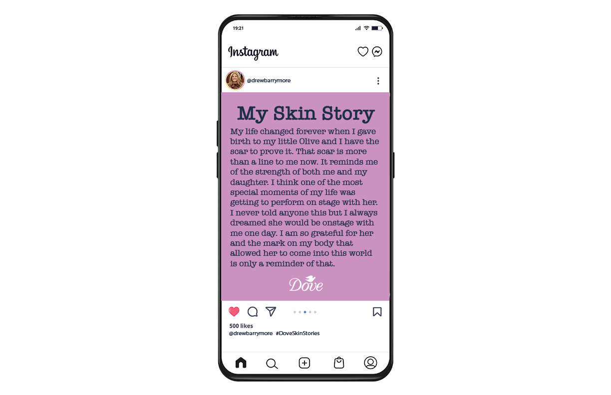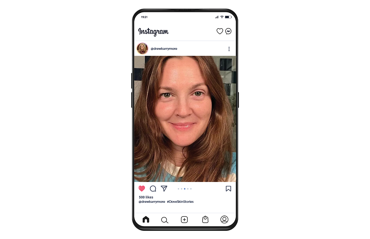 Dove had celebrities post bare-faced selfies on Instagram, proudly using #DoveSkinStories